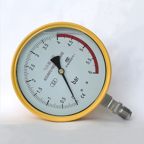 SUS304 Precision Pressure Gauge 150mm Yellow Test Manometer 6 Bar Pressure Gauge Images |